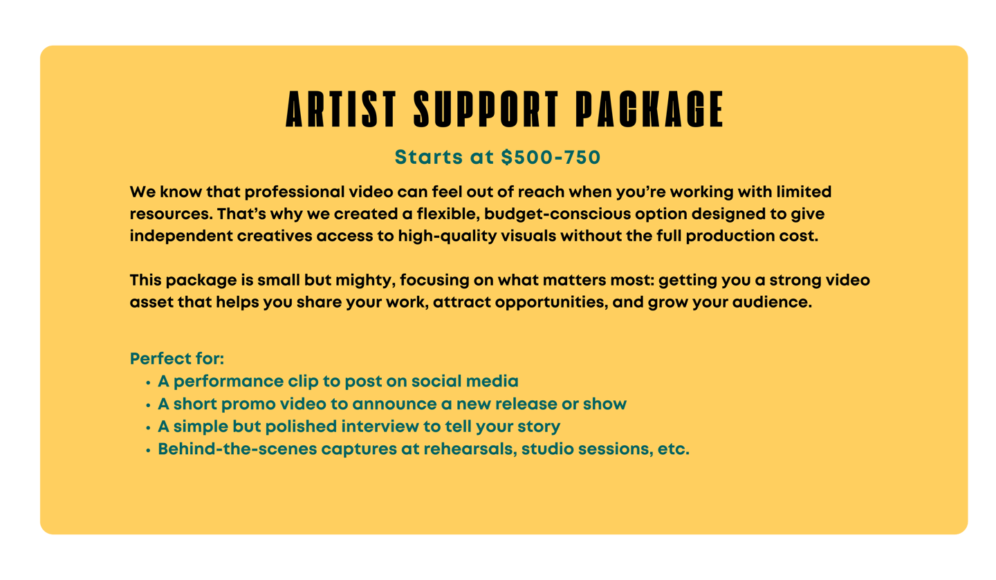 From wondering if your vision will be captured authentically, to concerns about budget, time, and quality. At Triple Threat Media, we remove that uncertainty. Our process is clear, collaborative, and rooted in respect for your artistry. Whether you represent an arts organization or are an independent creative, our priority is to deliver polished, professional videos that elevate your story without compromising your voice. With us, you can trust that your project is handled with care, expertise, and a commitment to excellence.